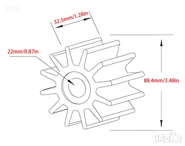 ВОДНА ПОМПА ИМПЕЛЕР за Mercury 40- 450hp 47-43026T2 ос 22 вис 32.5 диа.88.4 мм.