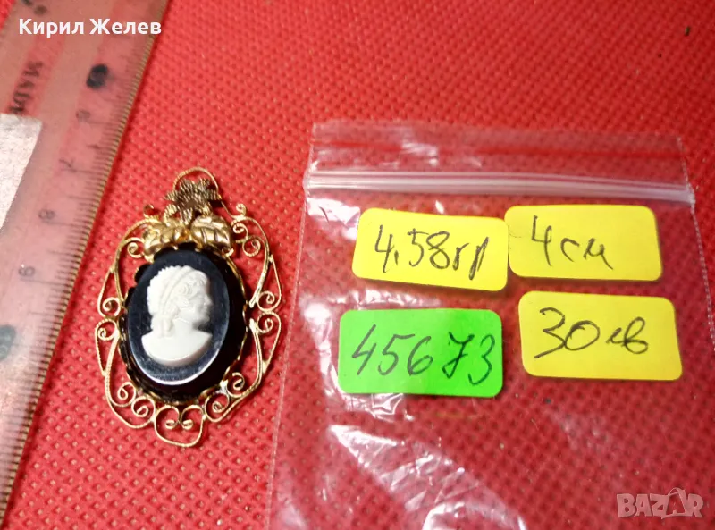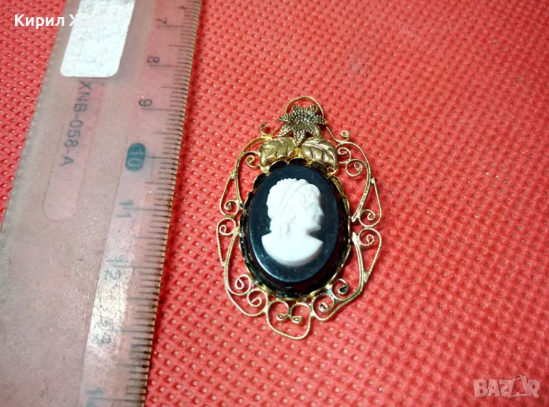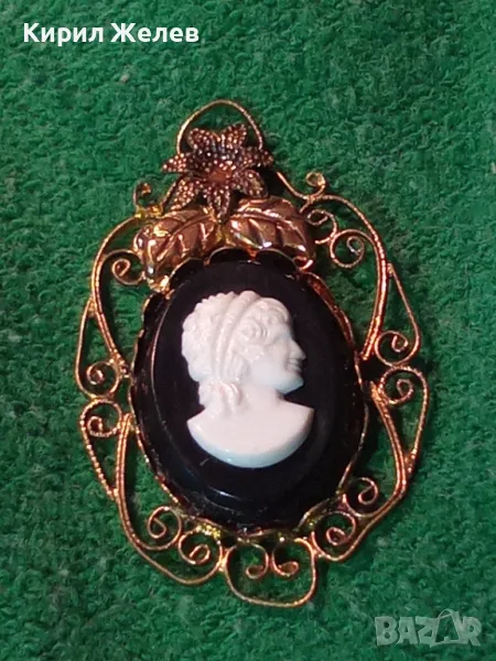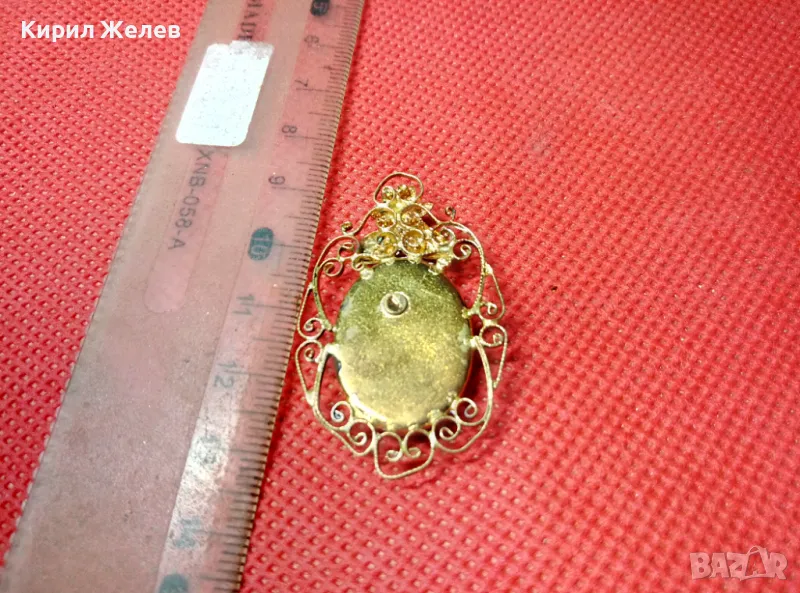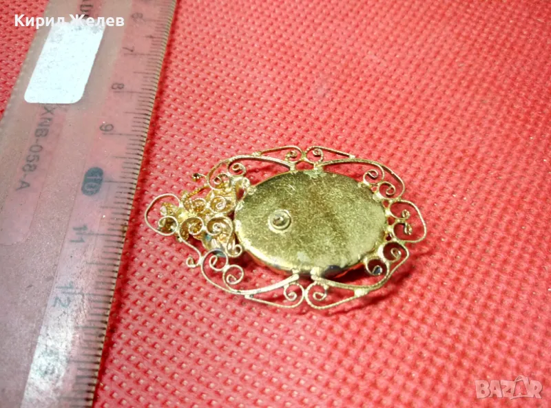 СТАРИННА ФИЛИГРАННА МЕДНА ПОЗЛАТЕНА КАМЕЯ КЛАСИЧЕСКА ФИНА МАЙСТОРСКА ИЗРАБОТКА РЕТРО БИЖУ 45673