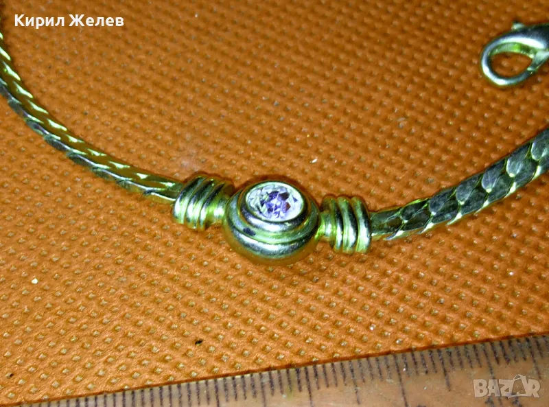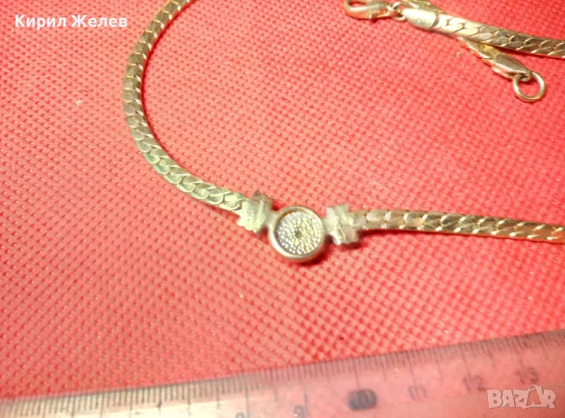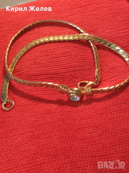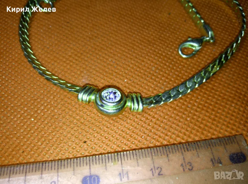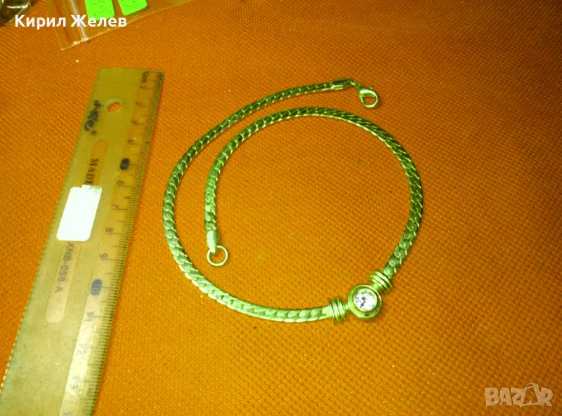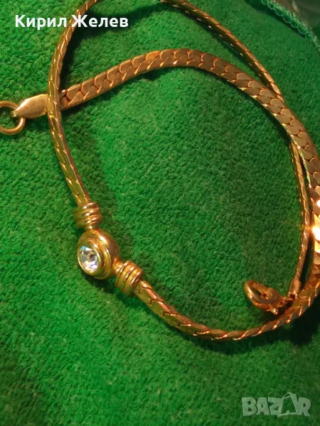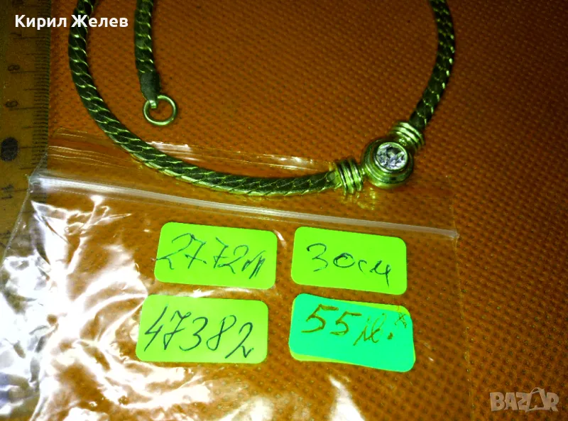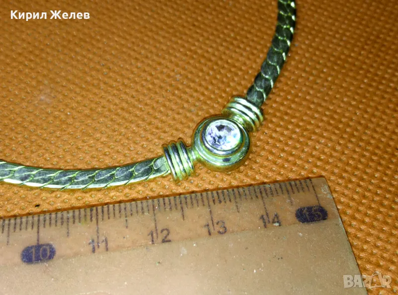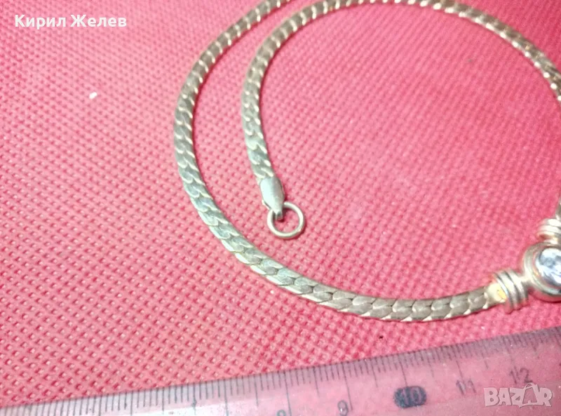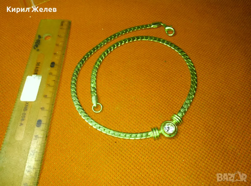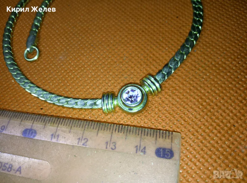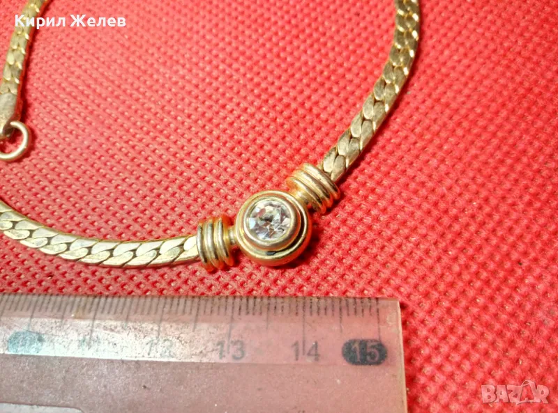 СТАРО РЕТРО БИЖУ ПРЕКРАСНО ДЕБЕЛО ПОЗЛАТЕНО МЕДНО КОЛИЕ с ИСКРЯЩ ФАСЕТИРАН СКЪПОЦЕНЕН КАМЪК 47382