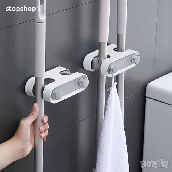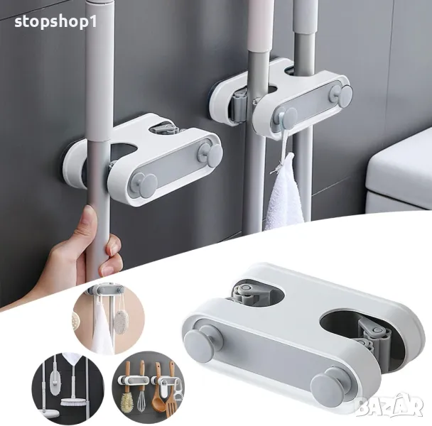 Двойна кука за щипки Многофункционален държач за моп Самозалепваща кука за моп Двойна карта Държач з
