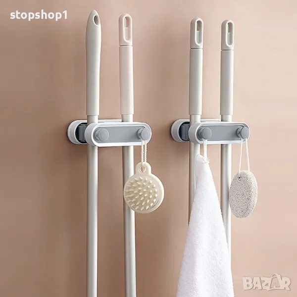 - Нашият стенен държач за моп има много приложения, не за окачване на мопове и метли, но и за окачване на различни малки предмети, като инструменти за поддръжка, чадъри, прибори. Дьо Кюи. ине, тоалетни четки и др.