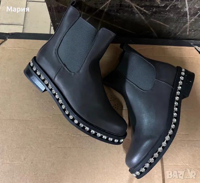 Дамски сиви кожени боти с камъни, снимка 1 - Дамски боти - 47122147 Дамски сиви кожени боти с камъни, снимка 2 - Дамски боти - 47122147 1/2