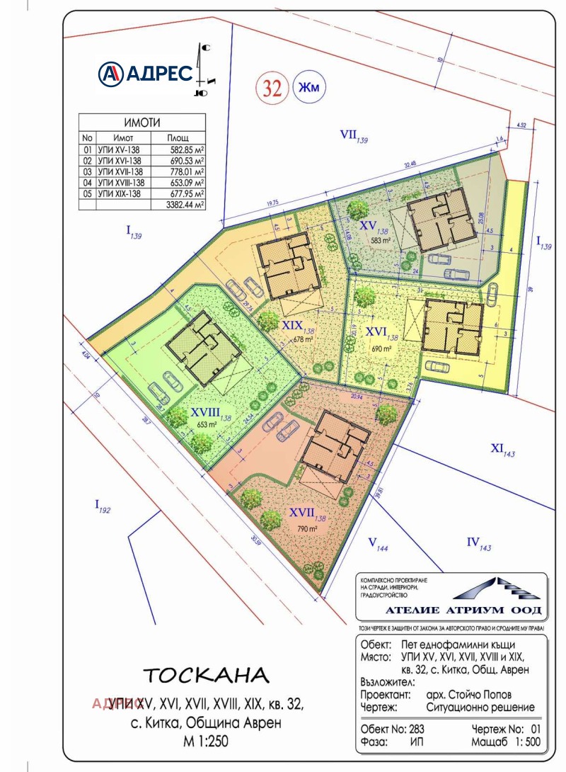 С влязъл в сила ПУП и ПРЗ, с издадени и съгласувани скица-виза за проектиране на жилищни сгради и становище за присъединяване към Електропреносна и ВиК мрежи.