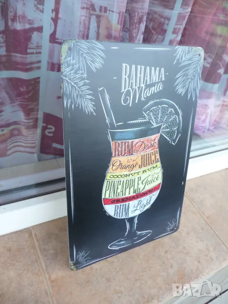 Метална табела коктейл Bahama Mama ром портокалов сок ананас кокос
