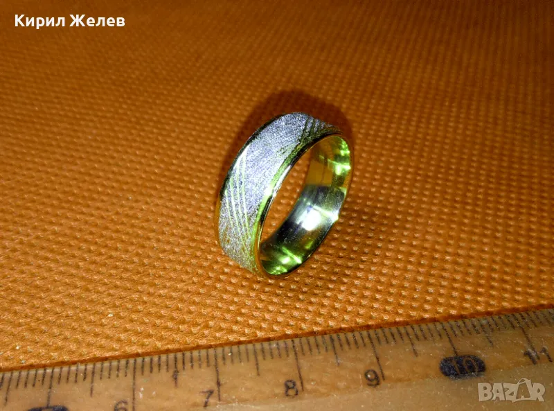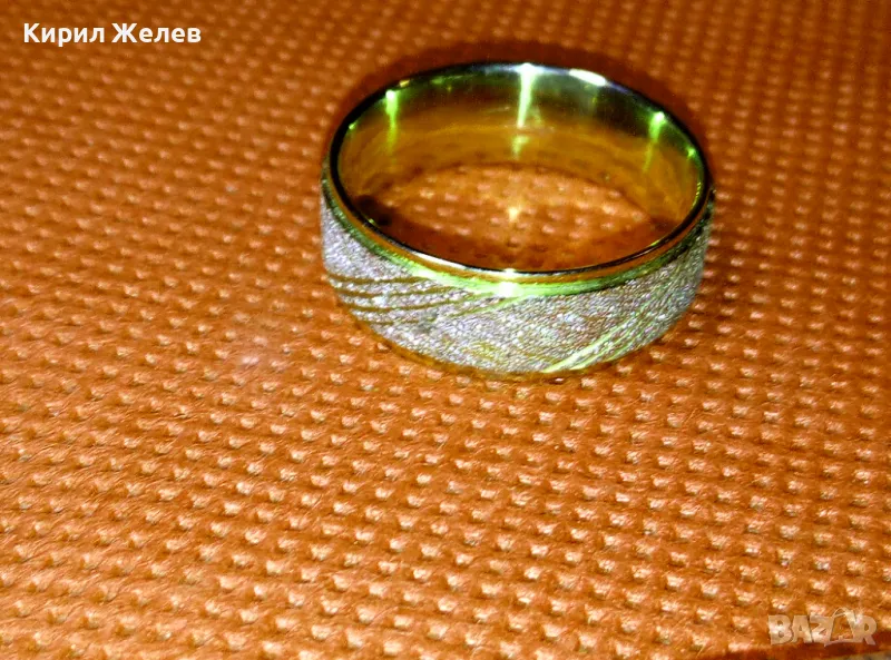 СТИЛНО ОРНАМЕНТИРАН ПОЗЛАТЕН ПРЪСТЕН ХАЛКА от БЛАГОРОДНА НЕРЪЖДАЕМА СТОМАНА 39717