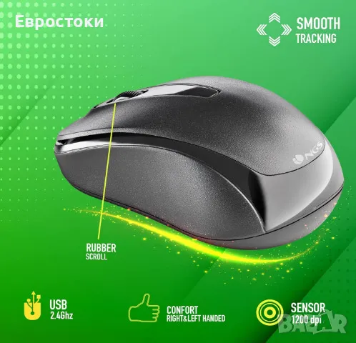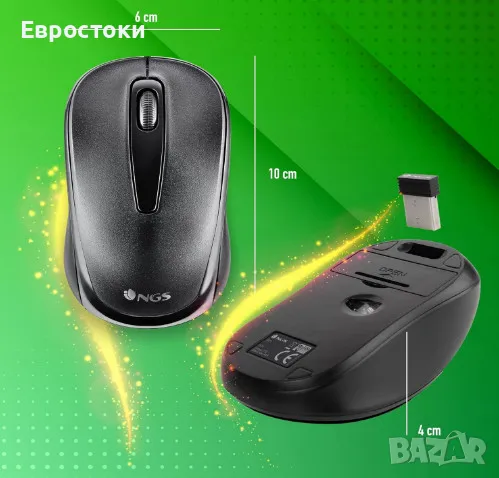 Безжична мишка NGS Easy Gamma, 2.4GhZ NANO приемник, 1200 DPI, цвят: черно.