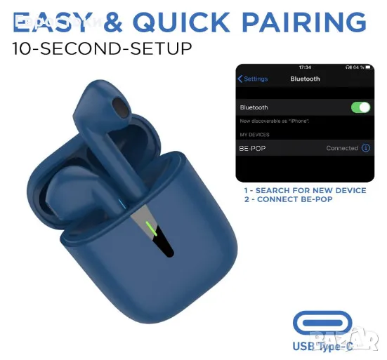 Безжични слушалки BlueElement Pop Bluetooth 5.1 TWS, 3D HD