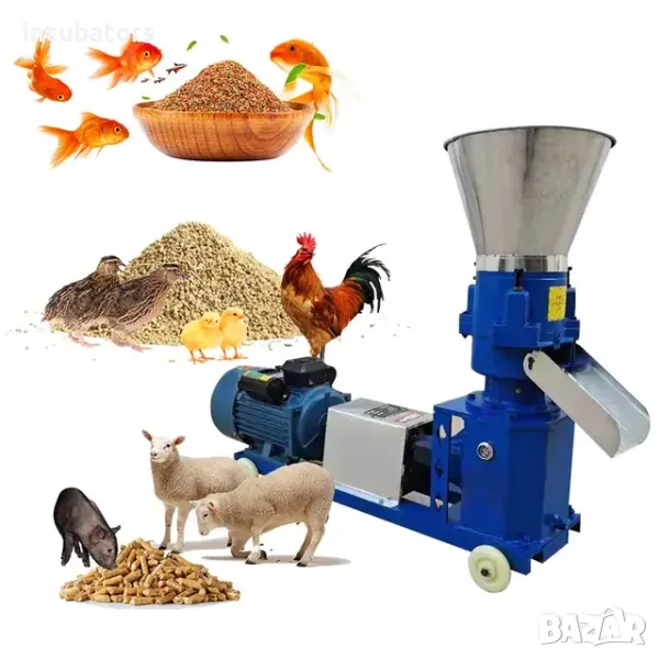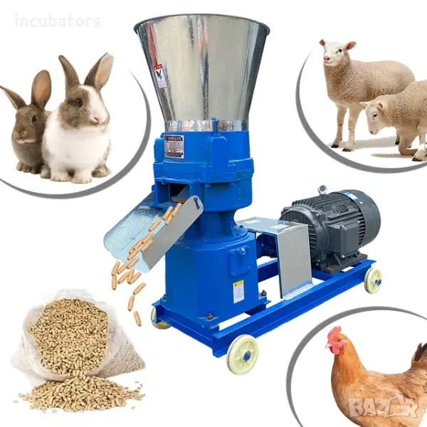 Соево брашно, зърно, слама, зелен фураж, костно брашно, суроватка на прах, масло, рибно брашно и различни храни могат да бъдат превърнати в пелети, а птици, животни и животни могат да бъдат преработени.