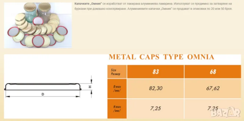Капацитет-капачки: Ø26 мм (Кроненкорк) и Ø68 / Ø82 мм (ОМНИЯ);
