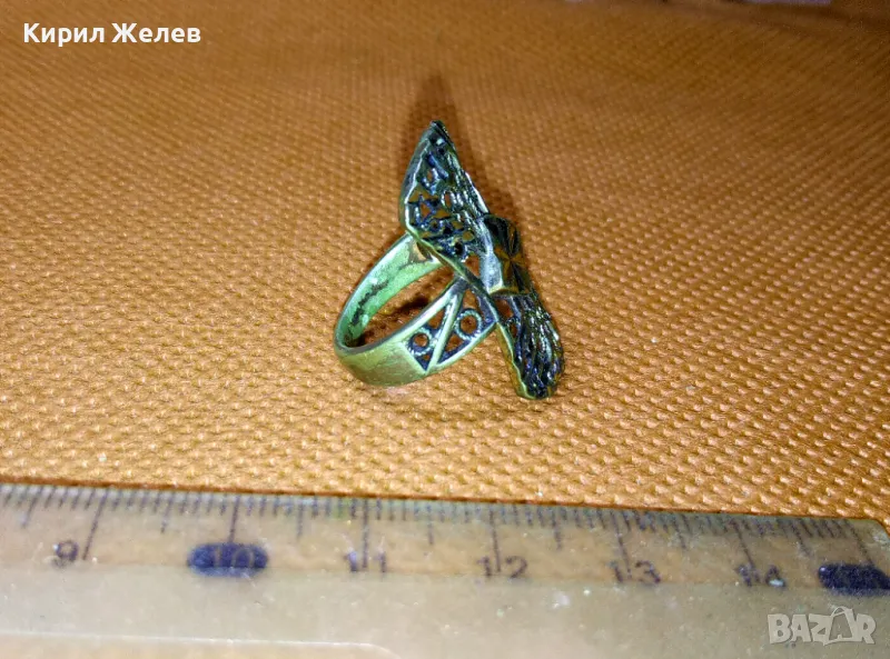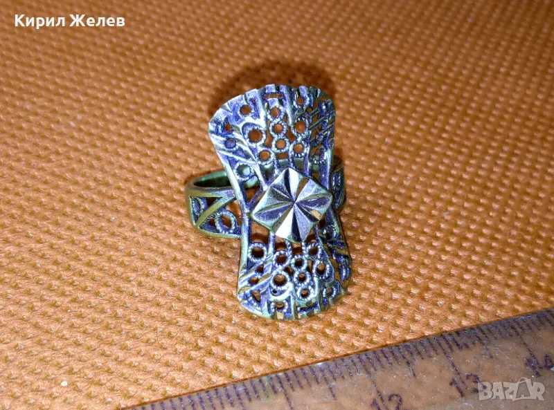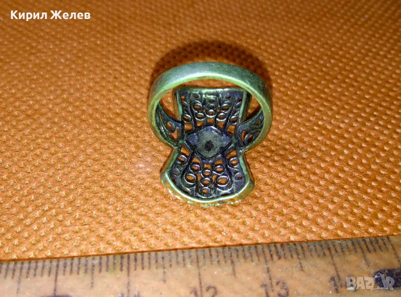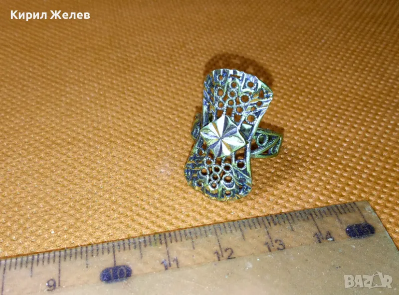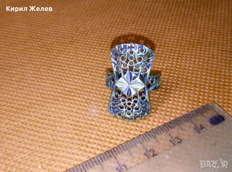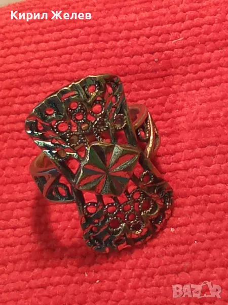 СТАРИНЕН АЖУРЕН с ПОЗЛАТА МЕДЕН РЕТРО ПРЪСТЕН РЪЧНА МАЙСТОРСКА ИЗРАБОТКА 47470