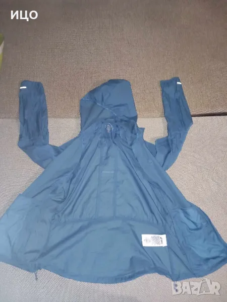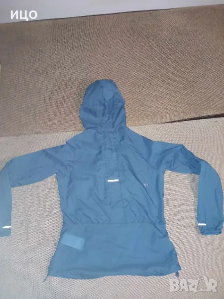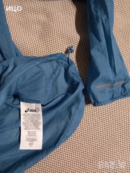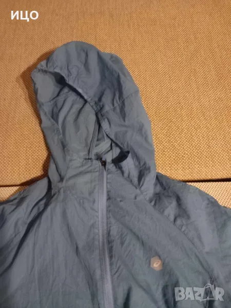 Състояние отлично на дамското шушляково горнище на Асикс. Много тънка и приятна на допир материя. Със качулка и два предни джоба с цип и ластици на кръста. Дължина 61см. широчина на подмишниците 49см Размер М. Цена 40лв.