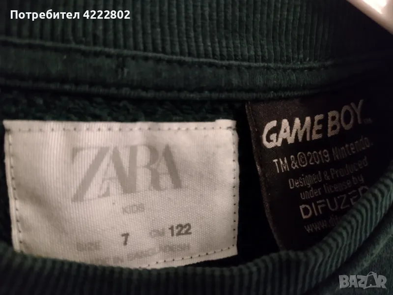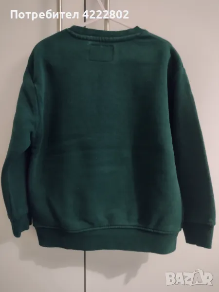 Детска ватирана тъмно зелена блуза Zara, размер 122 (7 години). Дължина - 48 см, ширина подмишници - 38 см. В отлично състояние.