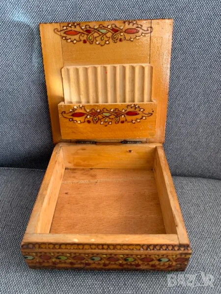 Българска дървена пирографирана кутия за цигари,цигаретник-3, снимка 1 - Антикварни и старинни предмети - 47126347 Българска дървена пирографирана кутия за цигари,цигаретник-3, снимка 2 - Антикварни и старинни предмети - 47126347 Българска дървена пирографирана кутия за цигари,цигаретник-3, снимка 3 - Антикварни и старинни предмети - 47126347 1/3