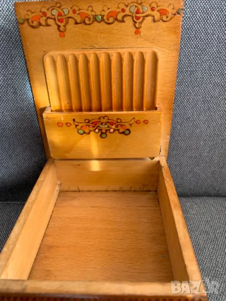 Българска дървена пирографирана кутия за цигари,цигаретник-5, снимка 1 - Антикварни и старинни предмети - 47126357 Българска дървена пирографирана кутия за цигари,цигаретник-5, снимка 2 - Антикварни и старинни предмети - 47126357 Българска дървена пирографирана кутия за цигари,цигаретник-5, снимка 3 - Антикварни и старинни предмети - 47126357 1/3