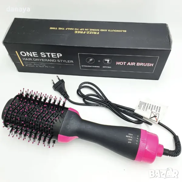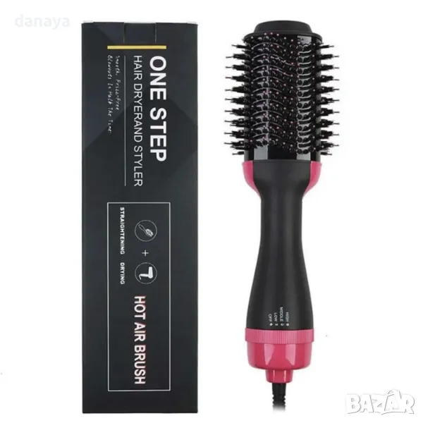 Представяме Ви четката за сушете и придаване на обем One step hair dryer. Идеалният уред за оформяне на косата! Всяка дама иска косата и да изглежда като след фризьор. Е с нашето предложение няма нужда да ходите на фризьор, за да изсушите и оформите косата по ваше желание. Четката сешоар с горещ въздух е с мощност от 1000W, което осигурява достатъчна мощност и топлина за по-бързото изсушаване и оформяне на прическата.