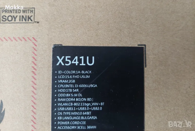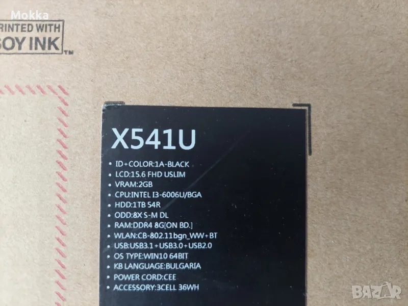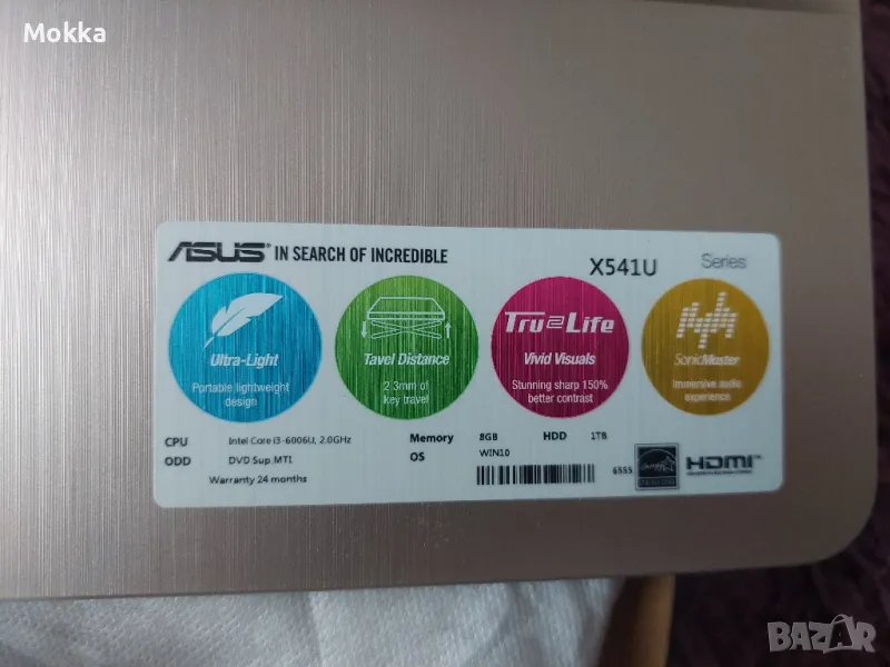 Чисто нов лаптоп Asus X541U, не ползван, без никакви следи от употреба.Единствената му забележка е, че батерията не работи, тъй като е стоял дълго време без да бъде пускан в експлоатация.Има инсталиран Win 10 на него (без никакви други настройки и програми).Параметрите му са показани на последната снимка.В оригиналната кутия си е.Зарядното работи - тествано е.