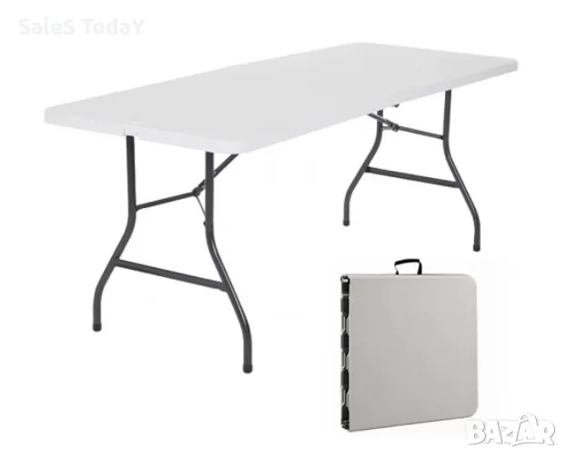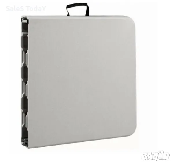 сгъваема маса за къмпинг,градина или за терасата на вашия дом.С елегантният си дизайн и солидната структора я прави издръжлива и стабилна.Плотът е направен от екологичен материал,лек полиетилен със защита от слънчеви изгаряния и устойчивост от вредни влияния.Почиства се лесно.Сгъваемия и заключващ се механизъм я прави лесно преносима за всякакви събития и събирания на открито и закрито.