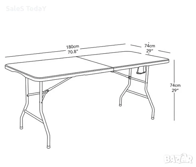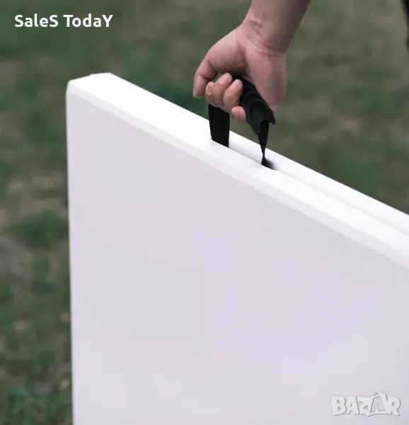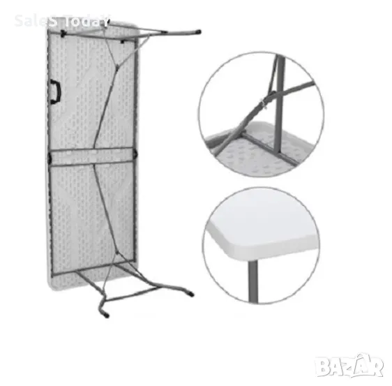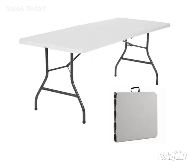 Преносима сгъваема маса за къмпинг,градина или за терасата на вашия дом.С елегантният си дизайн и солидната структора я прави издръжлива и стабилна.Плотът е направен от екологичен материал,лек полиетилен със защита от слънчеви изгаряния и устойчивост от вредни влияния.Почиства се лесно.Сгъваемия и заключващ се механизъм я прави лесно преносима за всякакви събития и събирания на открито и закрито.