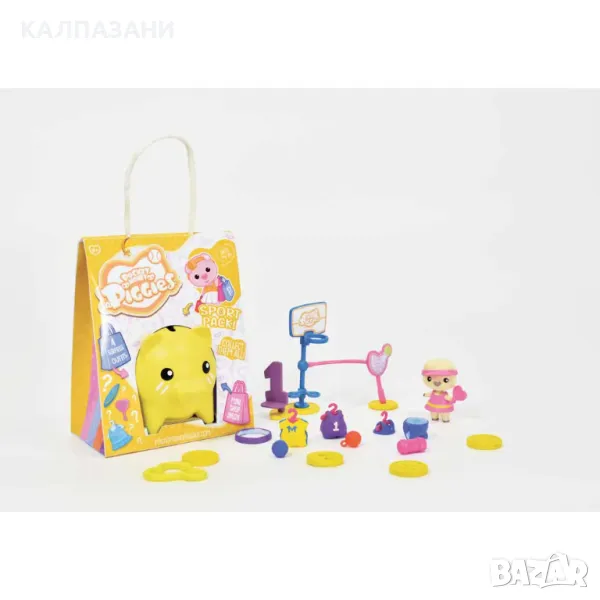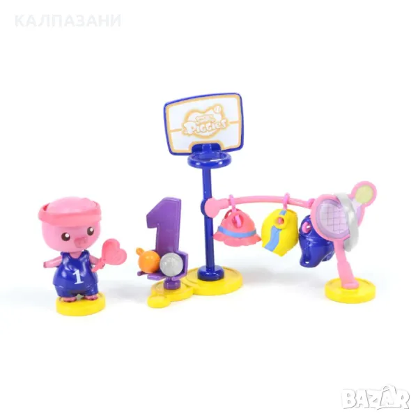 Съдържание на продукта: • 1 фигурка прасенце • 4 тоалета • 1 мини магазин • 4 аксесоара • 1 лист със стикери