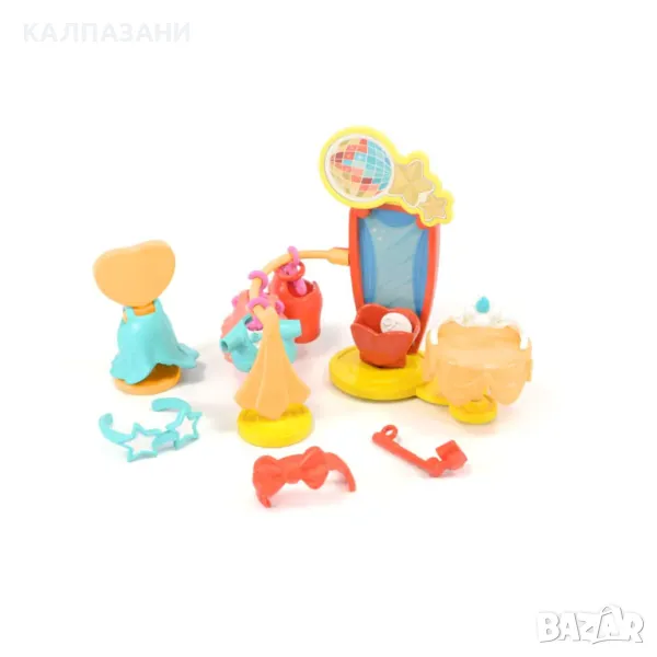 Съдържание на продукта: • 1 фигурка прасенце • 4 тоалета • 1 мини магазин • 4 аксесоара • 1 лист със стикери