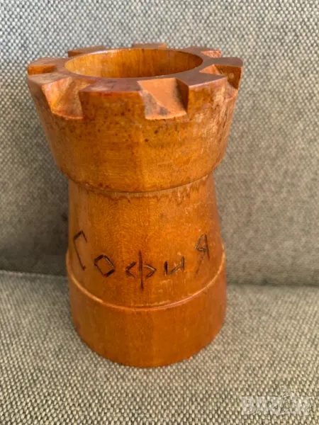 Стар масивен дървен моливник-1
