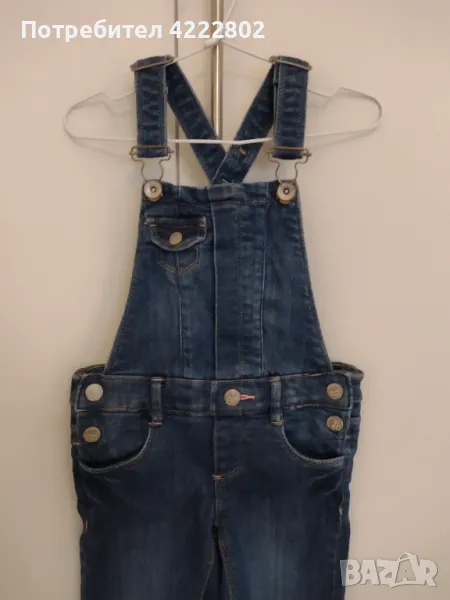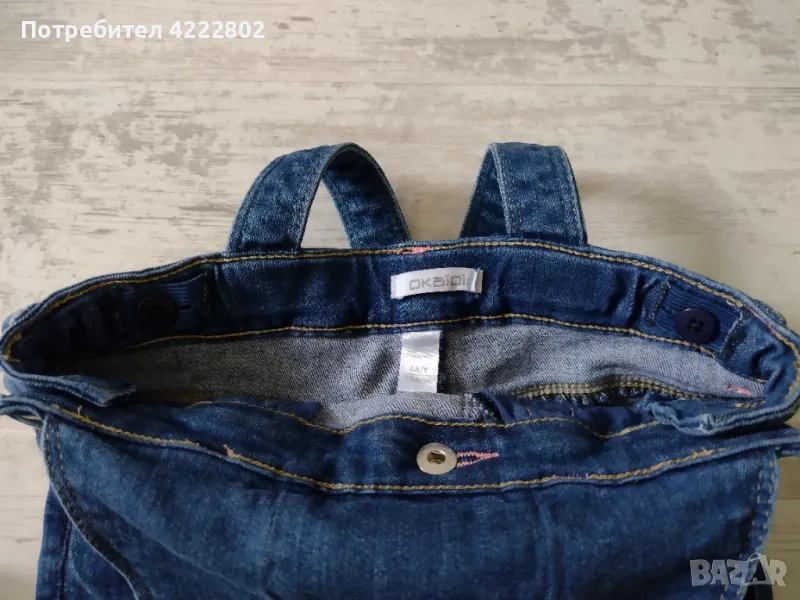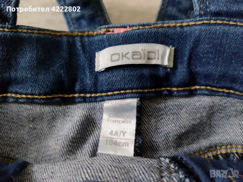 Детски дънков гащеризон Okaidi, размер 4 години. Отвътре има копчета за регулиране. В отлично състояние.