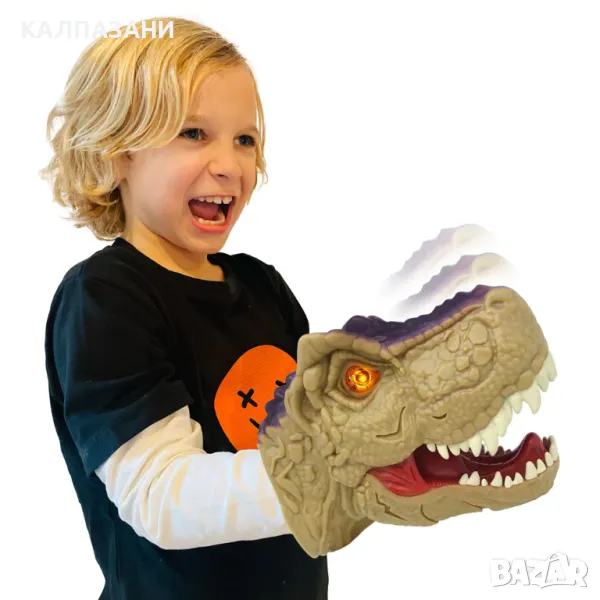 Превърни се в свиреп динозавър с тази реалистична марионетка динозавър T-Rex! За върховна ролева игра на динозавър, когато отвориш ръката си, динозавърът издава реалистични ревящи звуци и очите му светят в страховит жълт цвят. Изживей мечтата си наистина да станеш като Тиранозавър Рекс и захапи като просто затвориш ръката си!