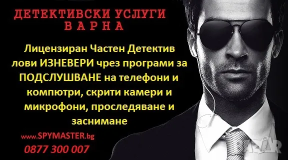 УСЛУГИ И ПОДСЛУШВАНЕ И ПРОСЛЕДЯВАНЕ НА ТЕЛЕФОНИ или на www.SPYMASTER.bg