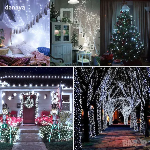 Гирляндът е с дължина 10 метра и има 100 LED светлини. Студена бяла светлина, приятна за очите и създава уютна атмосфера.