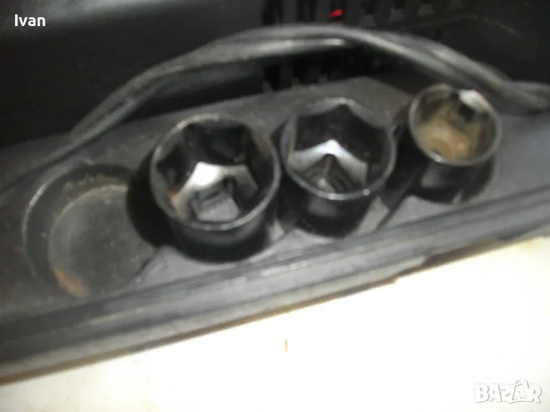 Към гайковерта има налични 3 бр. торсове/камъни/накрайници - ударни, от храм.ванадиум, размери: 23 мм, 21 мм, 17 мм.
