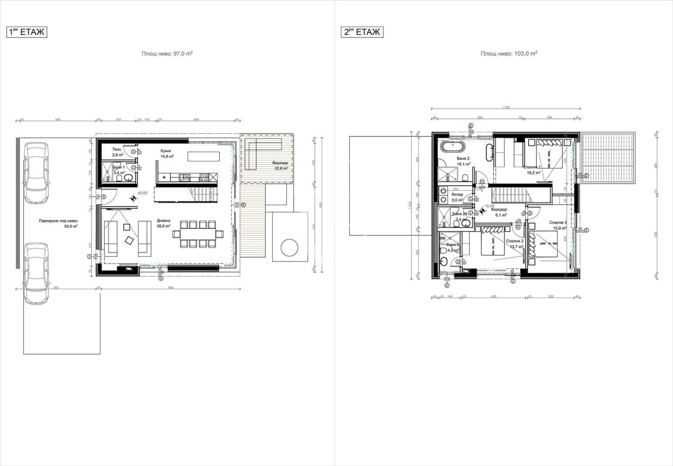 Проектирани на два етажа, къщите предлагат на първи етаж - просторна дневна с кухня и трапезария с излаз на веранда. Три спални на втория етаж, две бани, тоалетна за гости, тераса. Ref. ID:23863