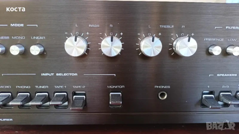 Усилвателя е с отличен външен вид,перфектно работещ,обстойно профилактиран.