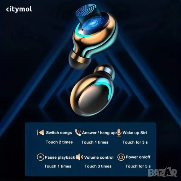 Сензорно управление: Слушалките имат интуитивно сензорно управление, което ви позволява да контролирате музиката, обажданията и други функции с леко докосване. Можете да превключвате песни, да отговаряте на обаждания, да регулирате силата на звука и дори да активирате гласовия помощник на вашия смартфон, без да се налага да използвате телефона си.