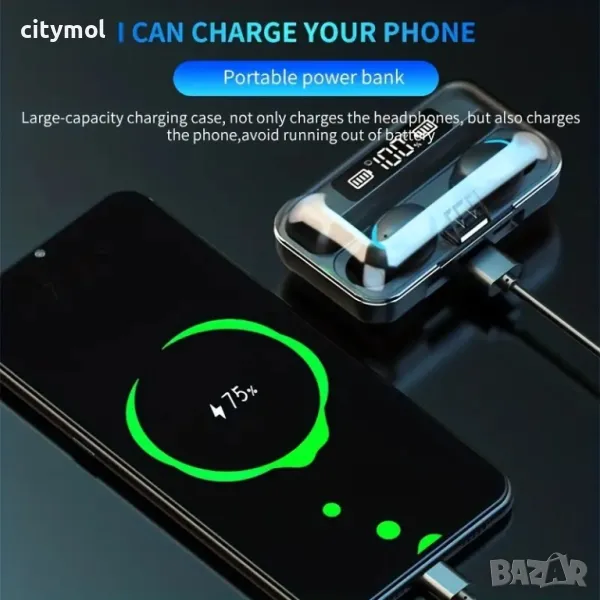 Стерео безжичните слушалки BTH-F9-5 са създадени за да ви предложат невероятно аудио изживяване и безупречен комфорт. Тези модерни слушалки са оборудвани с Bluetooth 5.3 технология и сензорно управление, което ви дава пълна свобода на движение и лесно управление на музиката и обажданията. Също така, те пристигат със стилна кутия за безжично зареждане, която осигурява удобство и защита на слушалките. На кутията има LED дисплей, показващ зареждането и % на заряд на докинг станцията. Наличен е и USB изход за зареждане на външни устройства от докинг станцията.