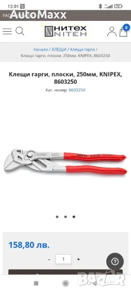 Клещи раздвижни, гаечен ключ 250mm, 86 03 250, KNIPEX/WÜRTH → Обява 47130850