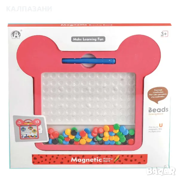 Под повърхността на екрана се поставят магнитните мъниста, като с помощта на стилуса се опитай да хванеш едно от мънистата и да го преместиш на правилното място на дъската според шаблона. Има включени карти, които показват задача, просто подреди магнитите по цвят и шарка. При никакви обстоятелства не трябва да се използват класически химикалки, маркери или мастилници на екрана.