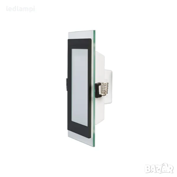 LED Луна 18W Стъкло - Квадрат Неутрално Бяла Светлина IP44 Черен Ринг