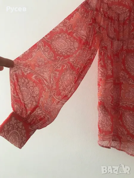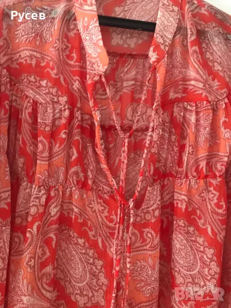 Ефирна риза, с флорален принт, с връзки и набран ръкав. Размер М, “MANGO” Нова, без етикет