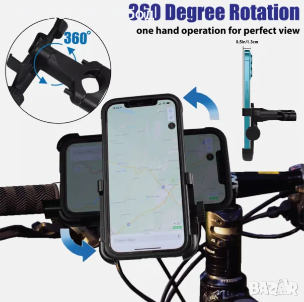 Алуминиева стойка за телефон на Велосипед/Мотор/АТВ - 360 градуса.