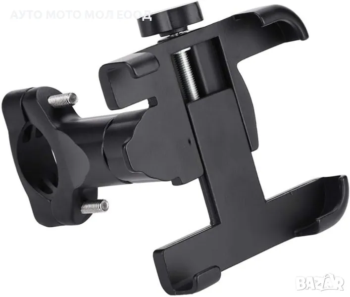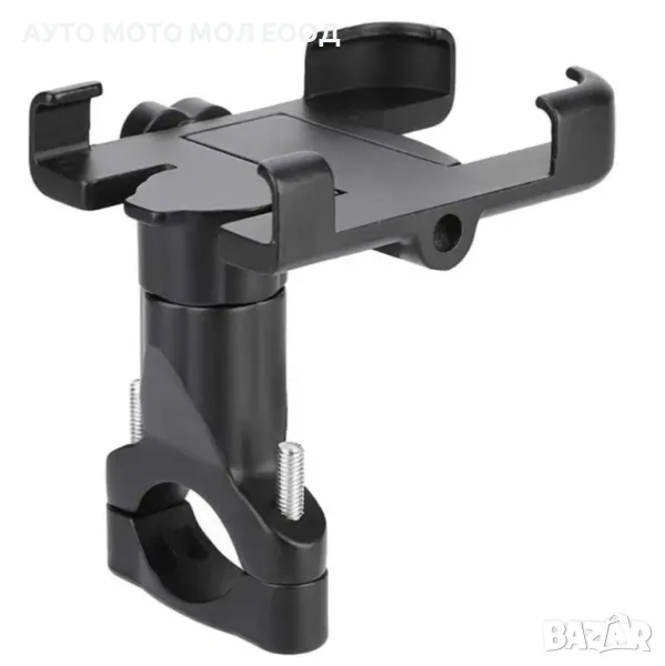 Висококачествена алуминиева стойка за телефон на мотор или велосипед, въртяща се на 360 градуса.Много стабилен монтаж, перфектно захващане на телефона без възможност за изплъзване на телефона и без вибрации.