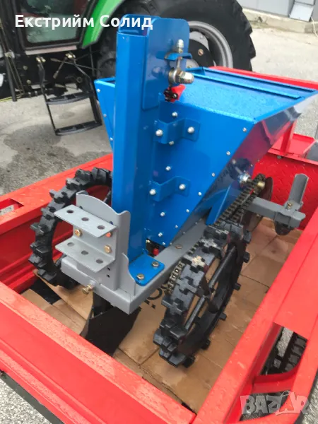 Отваряеми страници и седалка. Също така има крачна спирачка. Подходящо за мотофреза.