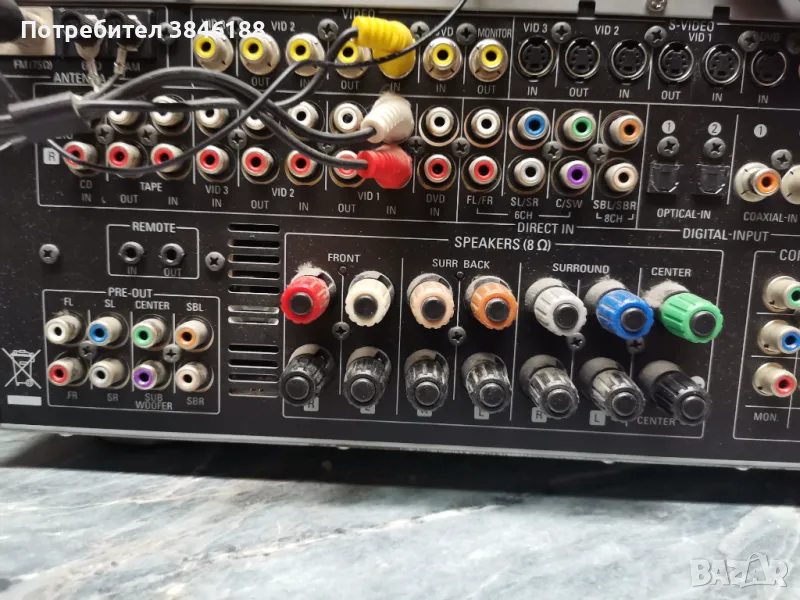 Канали на централните високоговорители: 50 вата на канал, 20 Hz –((какво е това?)) 20 kHz, при < 0,07% THD, двата канала при 8 ома