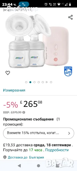 Електрическа помпа за кърма Philips Avent модел SCF397