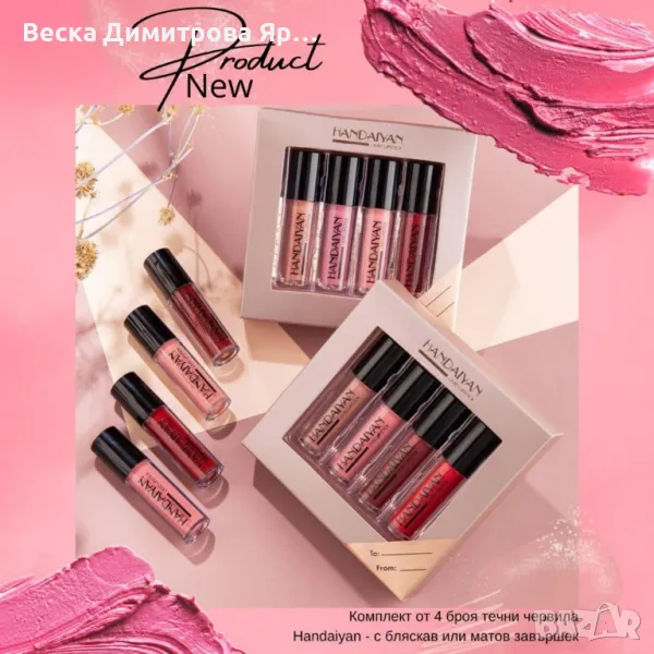 Комплект от 4 броя течни червила Handaiyan - с бляскав или матов завършек - Наличен: Сет 1 и Сет 2
