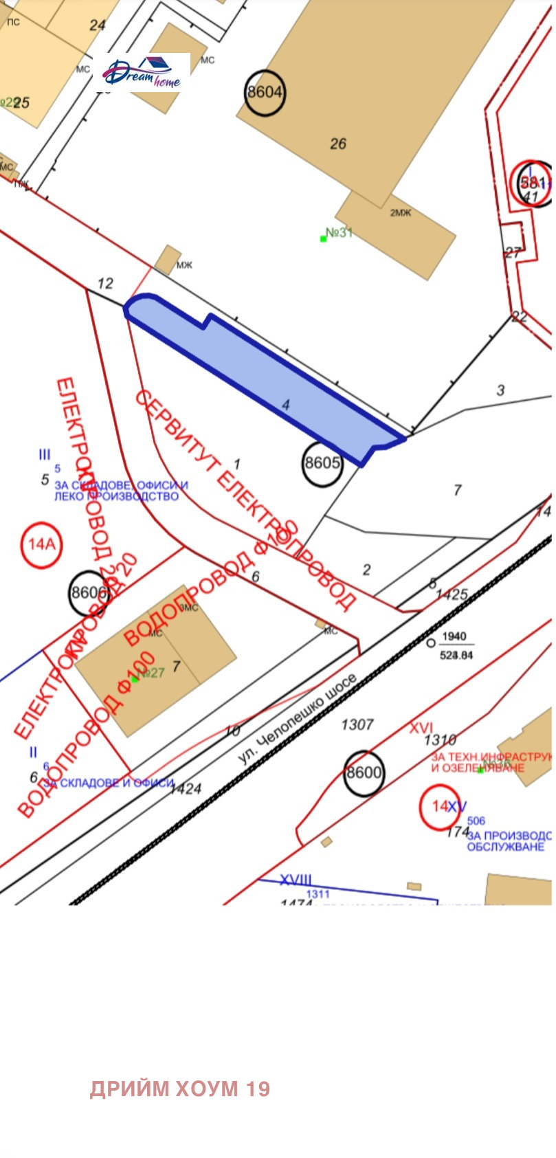 Изградена инфраструктура , асфалтов път до парцела.
