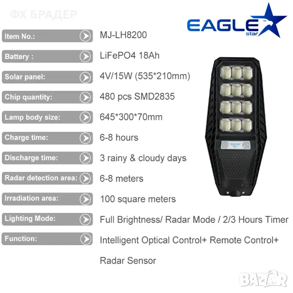 промоция! Соларна улична лампа РIR сензор,дистaнционно,480 LED,200W, снимка 1 - Соларни лампи - 47136836 промоция! Соларна улична лампа РIR сензор,дистaнционно,480 LED,200W, снимка 2 - Соларни лампи - 47136836 промоция! Соларна улична лампа РIR сензор,дистaнционно,480 LED,200W, снимка 3 - Соларни лампи - 47136836 промоция! Соларна улична лампа РIR сензор,дистaнционно,480 LED,200W, снимка 4 - Соларни лампи - 47136836 промоция! Соларна улична лампа РIR сензор,дистaнционно,480 LED,200W, снимка 5 - Соларни лампи - 47136836 промоция! Соларна улична лампа РIR сензор,дистaнционно,480 LED,200W, снимка 6 - Соларни лампи - 47136836 промоция! Соларна улична лампа РIR сензор,дистaнционно,480 LED,200W, снимка 7 - Соларни лампи - 47136836 промоция! Соларна улична лампа РIR сензор,дистaнционно,480 LED,200W, снимка 8 - Соларни лампи - 47136836 1/8