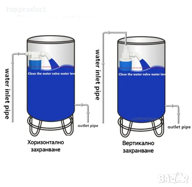 Автоматичен контролер за нивото на водата. Подходящ за резервоари, тоалетни казанчета, бидони, поилки и др.