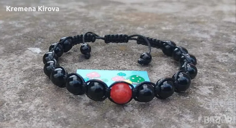 Гривна шамбала от най-силния защитен камък турмалин и червен яспис. Само от Бижута Луди гъби.