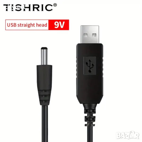 5V към 9V USB кабел за повишаване на напрежението, с жак 5,5 x 2,1 mm