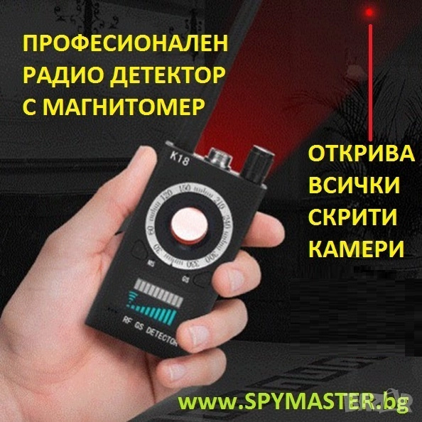 - Радиочестотен скенер, откриващ всякакъв вид звукови и видео безжични